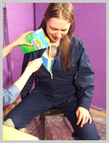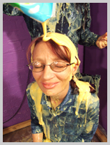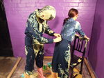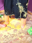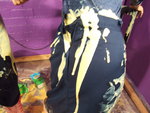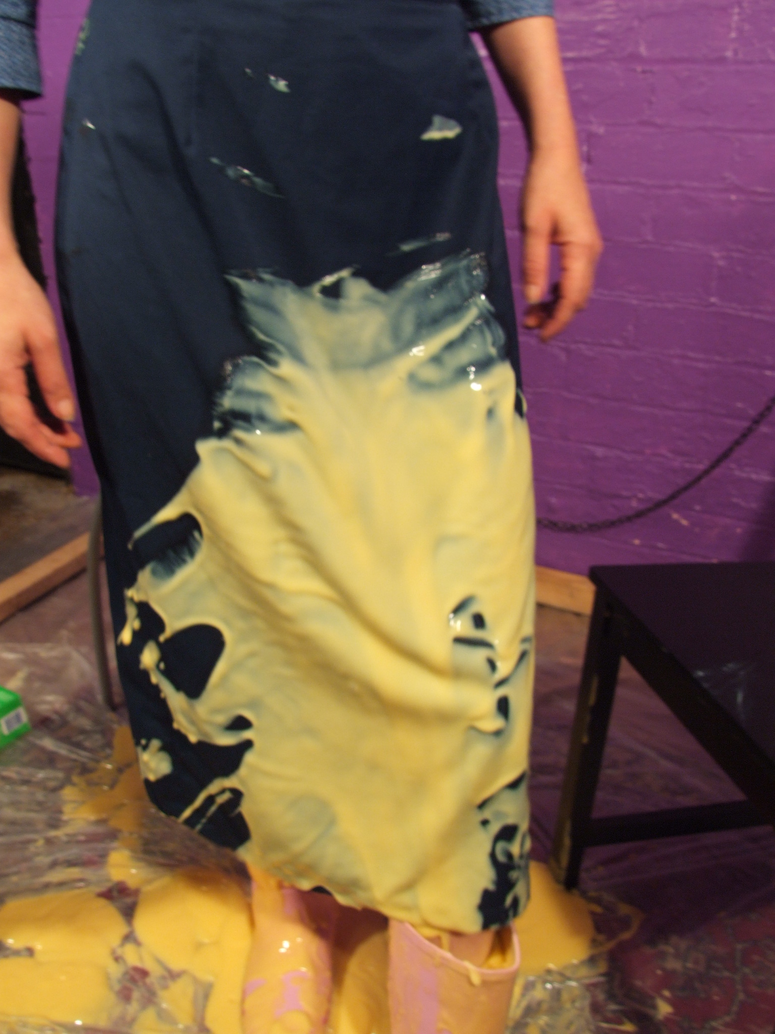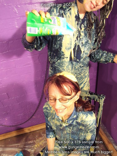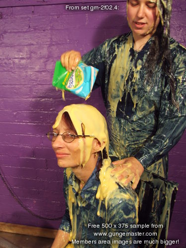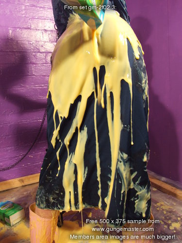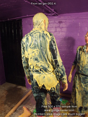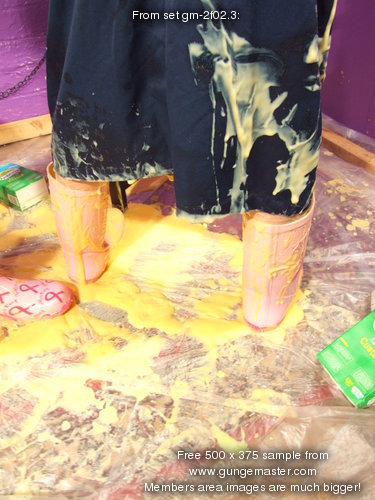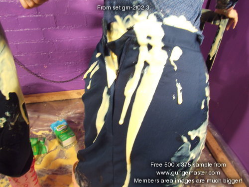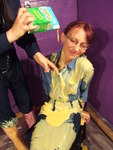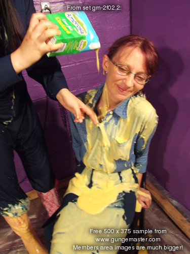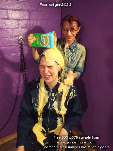 with yellow mess, and then Maiden has her boilersuit filled, the custard