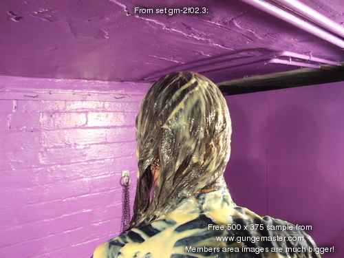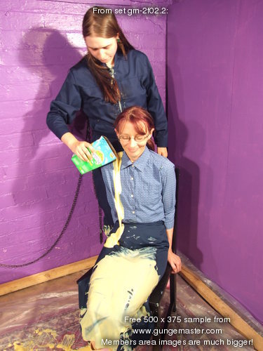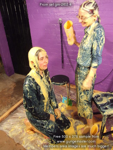And so the gunging begins, with Maiden kneeling at her mistress's feet,