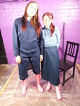 further with a finely-fitted navy blue boilersuit. Both ladies wear one-piece
