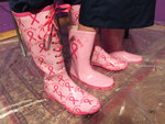 she came upon these delightful bright pink rubber boots by "Tickled Pink".