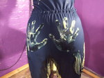 inside of Jasmine's skirt, before neatly doing the skirt up again and pouring