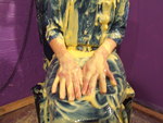down inside her trouser legs when she stands.