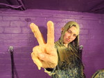 custard-filled wellies (which she's kept on throughout the shoot), and empties
