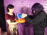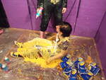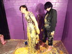Eventually Nurse Wendy sits down on the already pie-covered floor, and lady Full Wellington pours lots and lots of custard over her until her dress is completely and utterly soaked in thick yellow liquid.