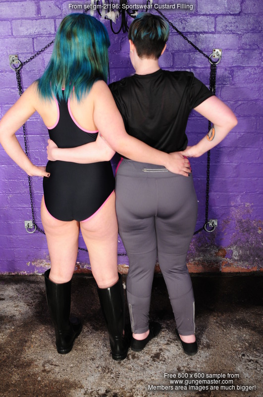 Note that Daisy stays completely clean and dry bar a few small splashes and smears on her swimsuit. Have no fear though, Daisy's swimsuit is of course in line for a thorough filling in the future. Saturation Hall - where no clean lady goes ungunged for long.