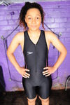 In this scene Friday wears a genuine Speedo triathlon swimsuit in grey with hints of pink, and toytally fills the suit, and then covers herself, in thick yellow custard. She starts with filling the front, undoing the zip slightly and pouring lots of custard inside her suit until it seeps through the spandex and flows down her legs. She also fills the back and sides, where we can see the custard flowng insde through the mesh panels in the suit, before it slips down to her spandex-clad bottom and starts to leak through just as it did at the front.