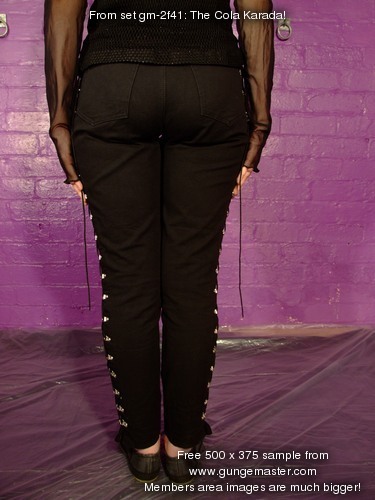 The mysterious, enigmatic, and very beautiful, Sister Graves returns to the Hall, dropping in on Lady Rose for a night of playful rope work. Rose has a new outfit for the occasion, bondage-style punk/goth, with lace-sided black jeans, see-through 'Vampire' top worn over a swimsuit, and a denim-and-mesh jacket to match her jeans. For her part the Good Sister keeps things simple in a plain figure-hugging ankle-length black dress.