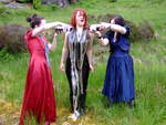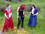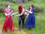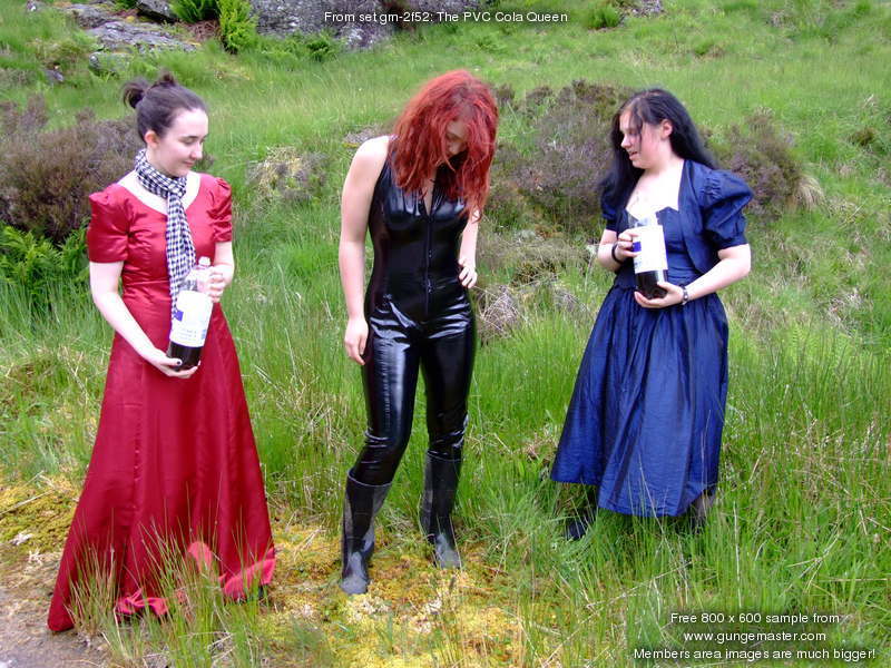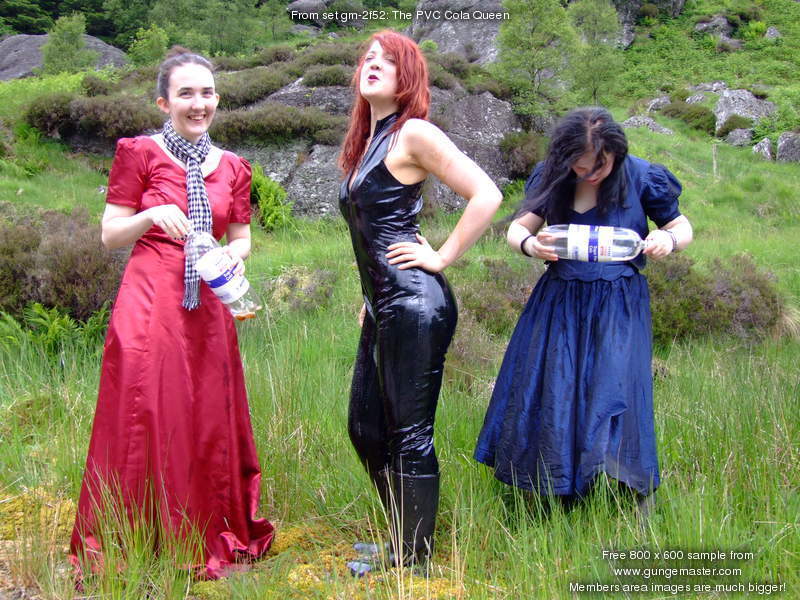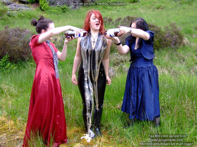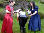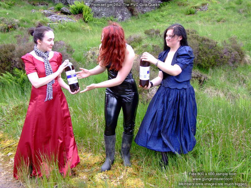 Lady Rose, and Wendy Household, in red and blue formal dresses, plus Lady Amaranth, dressed as a waitress, set about Morgana with gallons of cold, fresh, fizzy cola, on a quiet side road on Lady Jasmine's Highland estate.