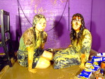 Next Rose has her blouse filled, custard and treacle poured liberally inside, after which it's Veronica's turn for the same treatment of her polo shirt.