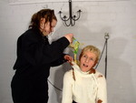 Oh dear! Tilly's been caught trespassing in the grounds of Saturation Hall again, and really needs to be soundly dealt with. Though you might think, given how ineffective she was at hiding when spotted - she claimed that waving her arms about was intended to disguise herself as an ornamental Yahoo Bird, a claim that might have been a tad more believable had not the last breeding pair of Yahoo Birds on the estate been wiped out in the fell winter of 1708, just over three hundred years ago - that she actually wanted to be caught and gunged! But nevertheless when we cornered her in the water gardens she gave herself up gracefully and said she would "take her punishment like a lady, and not resist whatever we might do to her".