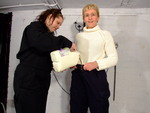 The gungings continue, Nurse Wendy delighting in her work, until Tilly is a saturated, stick, soggy mess from head to toe. There's even a bucket of custard over the head at one point!