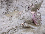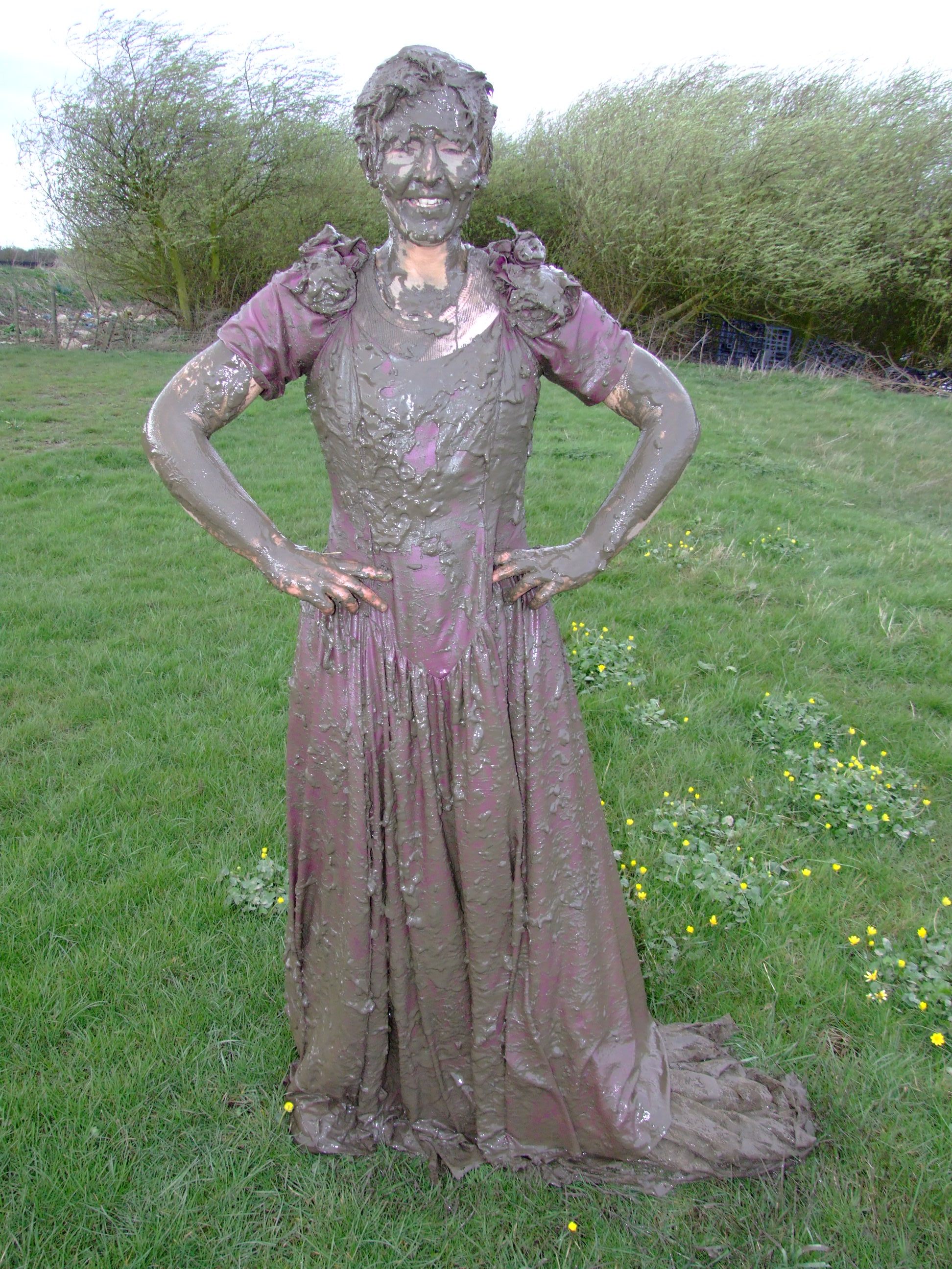 But appearances have to be kept up, and so officially at least, Tilly was caught in the wardrobe, trying to make off with one of her ladyship's gunge dresses. And having been caught, she had to be properly punished, Saturation Hall style - by being made to wear the dress she's appropriated into the river mudbanks!