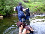 First they flood their boots, one by one, then they wade slowly into the water, allowing the level to rise bit by bit, only stopping when it's lapping at their waists. And then they have a furious waterfight at point blank range, great splashes and sheets of water cascading over each of them, neither giving way, just splashing each other even harder the next time.