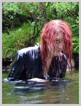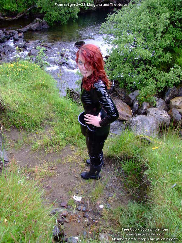 A smart nurse and a beautiful redhead in a PVC catsuit - what better combination to see in the water!