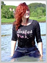 Morgana and Wendy are dressed for a shallow paddle, in matching blue "Briers" rubber boots. Lady Amaranth isn't, she's wearing black and white Converse-style basketball boots. So the other two grab her hands and merrily lead her into the water anyway!