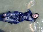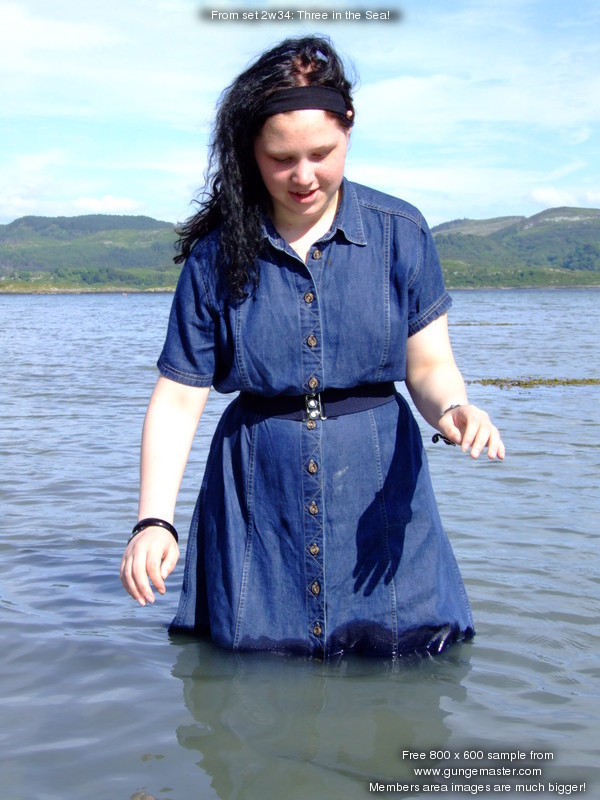 And lastly Nurse Wendy lowers herself into the water, her lovely blue denim dress gradually succumbing as she lowers herself into the water and rolls over, soaking herself completely.