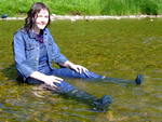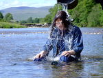 Traditions and rituals are important in Yorkshire. When she first came to the Hall, Chastity the head gardener symbolically 'married' herself to the land and the waters, taking a deep dip in the river in a beautiful white bridal gown. Now, as she prepares to commence her duties fully about the gardens of the estate, she completes the process, donning her favourite practical working rig of wellies, dungarees, t-shirt, and denim jacket, and wading out into the shallows of the river to be drenched by watering can, enjoying the feel of the water slowly engulfing and soaking her.