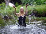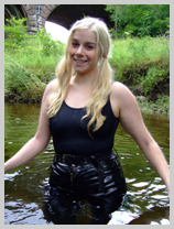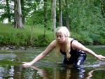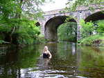 Here we see Modesty exploring the river below the great viaduct near the Southern boundary of the Langstonedale lands. The river here is pure and fresh, but the water flows fast and the depths can be decptive where the water has scoured out the bed just downstream from the mighty Victorian stonework of the railway viaduct.