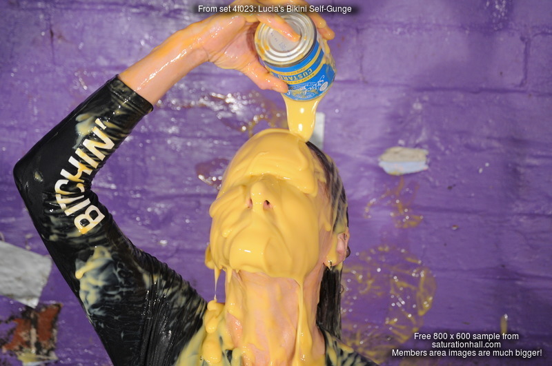 With this scene you get the full messy video, a separate hose-down wash-off video, and over 300 high res photos shot up close and personal using a 200mm lens to really focus in on the detail as Lucia mercilessly drenches her clothes and herself in mixed mess.