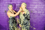 By the end of the scene both girls are utterly drenched in mess from head to toe, with full custard shampoos for both of them as well as having their faces and every stitch of their outfits including their shoes, utterly drenched in mess.