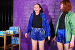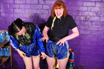 Miss Abigail and Honeysuckle have come to the dungeon together, dressed up to get messed up, they are each wearing bright blue shiny sports shorts and dark blue polo shirts, tucked into their shorts, long white Adidas sports socks, and lightweight nylon Adidas jackets, blue for Honeysuckle and green for Miss Abigail. They both have wellies on, clear transparent ones for Miss Abigail, and union jack ones for Honeysuckle, and beneath their shorts and shirts they are each wearing black high-waist knickers and black sports bras. And they are both going to absolutely drench each other in custard!