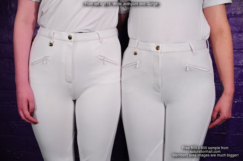 Identically dressed in tight white jodhpurs, white polo shirts, and chunky black wellies, Maude and Miss Abigail are going to put each other's outfits to the gunge test. They each have buckets of blue and green gunge - or "bleen" as Maude calls it - and both are going to get very messy indeed!
