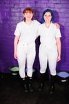 Jodhpur filling comes first and soon those lovely white horse-riding pants are not so white any more as coloured gloop flows down inside them and soaks through the fabric from within. Their polo shirts don't escape the messing and are soon also being filled, before they completely cover each other from head to toe in gunge. They fill their boots, take them off and empty the contents over each other, then fill them to the brim again, pour more gloop, and put them back on.