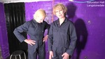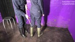They carefully drench each other, starting by filling each other's boots before moving on to soak their boilersuits from the legs up, and then once they're both drenched, they break out the shampoo and conditioner and thoroughly wash each other's hair, all still fully dressed of course.